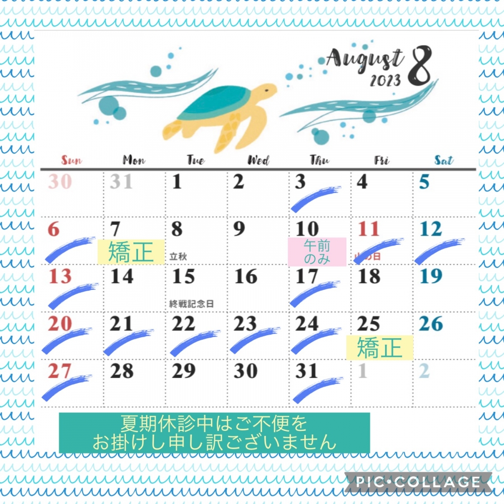 夏期休診のお知らせ 誠に勝手ながら、夏期休診として下記の日程を休診日とさせていただきます。 [夏期休診日程] 2023年8日10日(木)午後~2023年8月13日(日) 2023年8月20日(日) 〜2023年8月24日(木) ご不便をお掛け致しますが、何卒ご了承頂きますようお願い申し上げます。 2023.07.26 ùお知らせ一覧へ戻る Archive 2025 2024 2023 2022 2021 2020 2019 2018 2017 2016